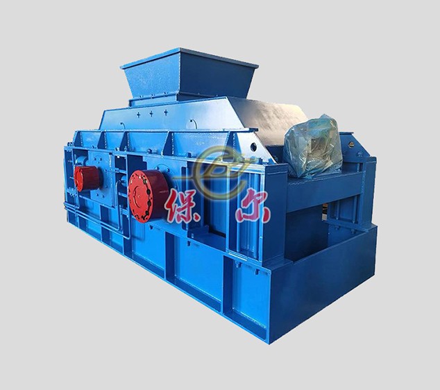 對(雙)輥破碎機是利用兩個高強度耐磨合金破碎輥,相對旋轉產生的高擠壓力來破碎物料,物料進入兩輥間隙(V 型破碎腔)以后,受到兩破碎輥相對旋轉的擠壓力和剪切力作用,在擠軋、剪切和嚙磨下,將物料破碎成需要的粒度從排料口排出。