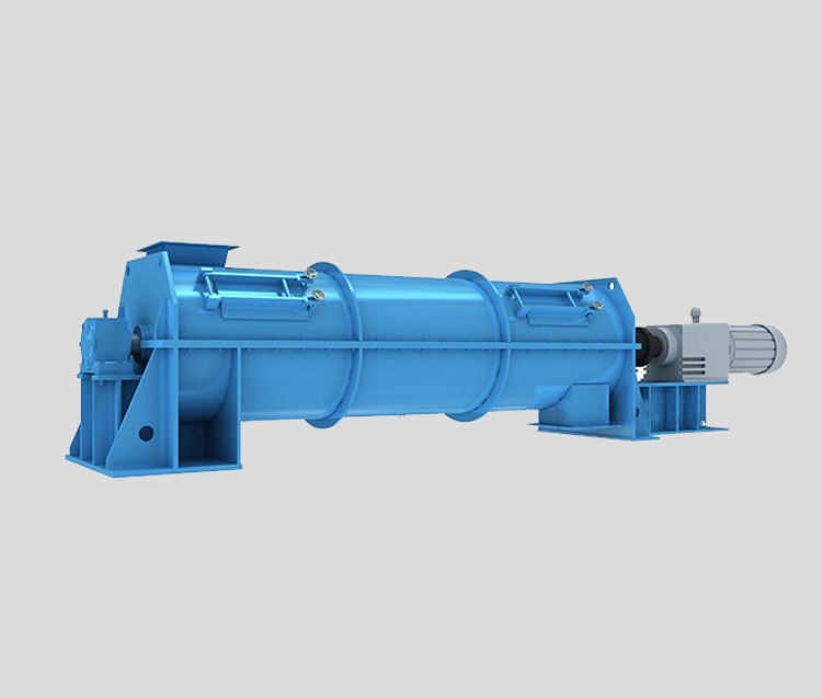 本系列通用產(chǎn)品由電機通過硬齒面減速器,再通過齒輪聯(lián)軸器(或液力耦合器)帶動混合轉(zhuǎn)子以一定速度轉(zhuǎn)動,混合轉(zhuǎn)子上固定有特殊幾何形狀高耐磨混合工具,當(dāng)混合工具轉(zhuǎn)動時,使物料在筒體內(nèi)進(jìn)行混合并可連續(xù)出料,物料在容器內(nèi)進(jìn)退混合,達(dá)到混合目的。